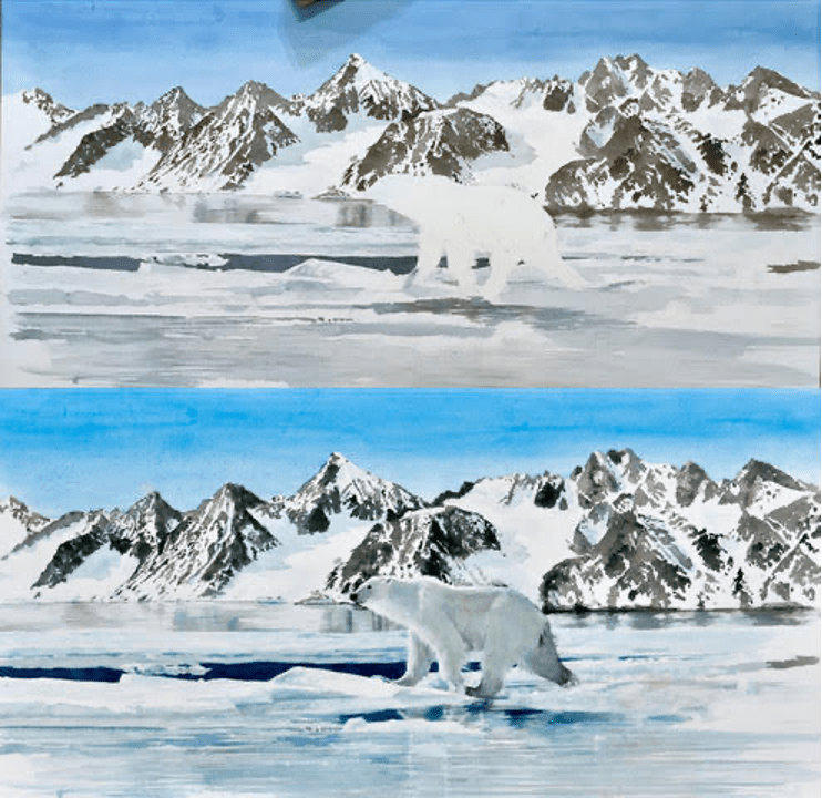 Travailler la perspective dite aérienne (ou atmosphérique), avec préparation des couleurs des premiers plans et des fonds (paysages…), et intégration de personnages ou d’animaux en mouvement.