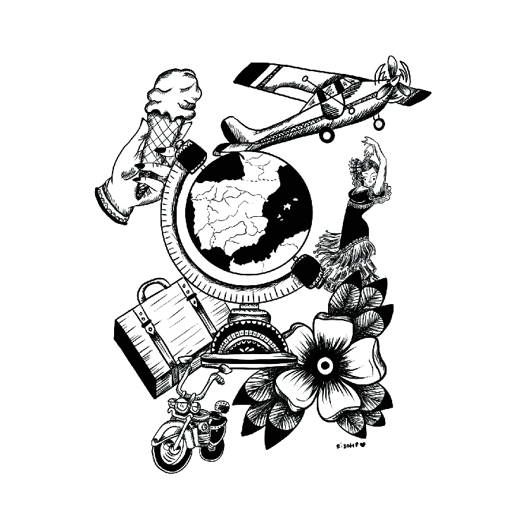 Comme sur un carnet de voyage, un dessin accompagne chaque nouvelle. Neuf illustrations pour susciter la curiosité sans en dévoiler leurs rebondissements inattendus.