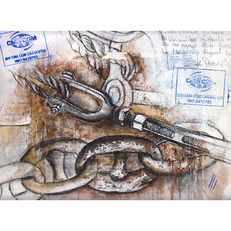 Viscéralement nomade et verticale, à l’instar de mon travail qui ne se satisfait pas de la fixité et des habitudes, j’ai besoin d’être en mouvement. Je vis et travaille à Sète, cité portuaire familiale. Le port est mon terrain de jeu préféré, la mer ma sève bleue, vitale. Mes carnets mettent en lumière la vie embarquée, les marins mais aussi les pilotes, car sur les océans ou dans le ciel, les valeurs humaines et les risquent sont identiques. Thalassa m’a suivie en mer sur 3 émissions et parmi mes nombreuses expositions, celle du Musée du Word Ocean à Kaliningrad en Russie reste mon plus beau souvenir.