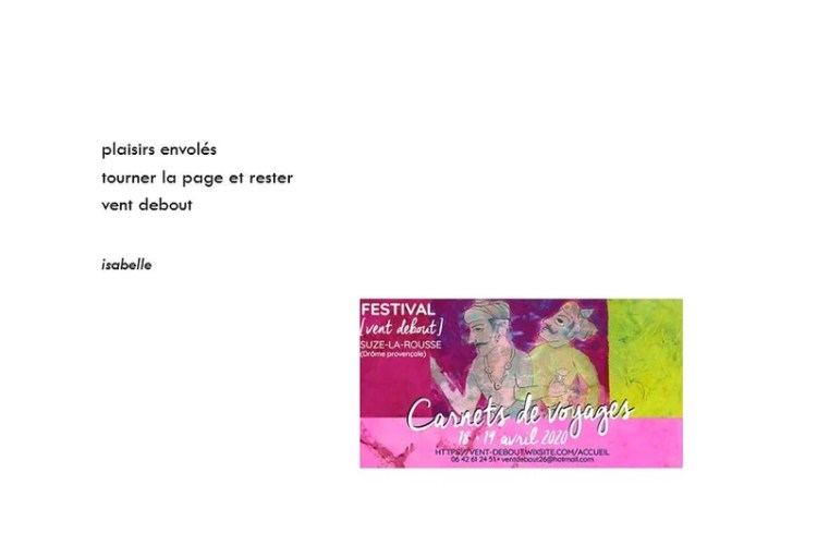 2020 C’est toute l’équipe de [VENT DEBOUT] qui a fait son FESTIVAL confiné…!! en adressant ses pensées chaleureuses aux artistes invités… Land Art MT < Festival 2021 < > Festival 2019 >
