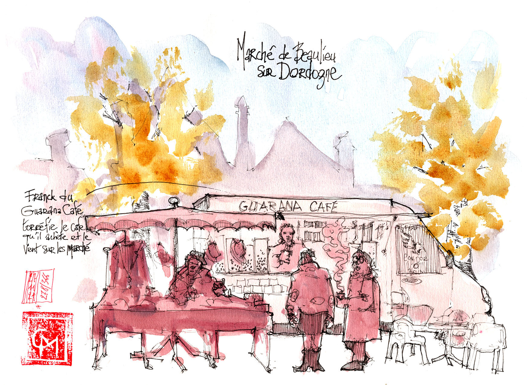 Paysan dans le sud Corrèze à Queyssac les Vignes depuis 18 ans et autodidacte en tout, JLoup a toujours aimé dessiner. Il a noirci très longtemps des petits croquis sans queue ni tête sur tous les papiers passant à sa portée. C’est à l’occasion d’un voyage en Guadeloupe, en 2023, qu’il a remisé son appareil photo au placard pour plonger dans l’aventure du carnet de voyage. Depuis, il a toujours un carnet dans son sac pour y croquer son quotidien.