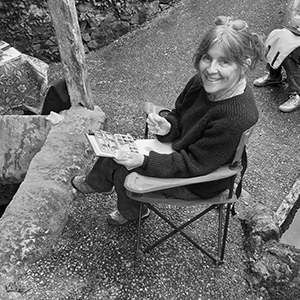 Elle a parcouru la planète comme guide- accompagnatrice et conférencière, toujours avec carnet et crayon en poche pour croquer l’instant vécu.