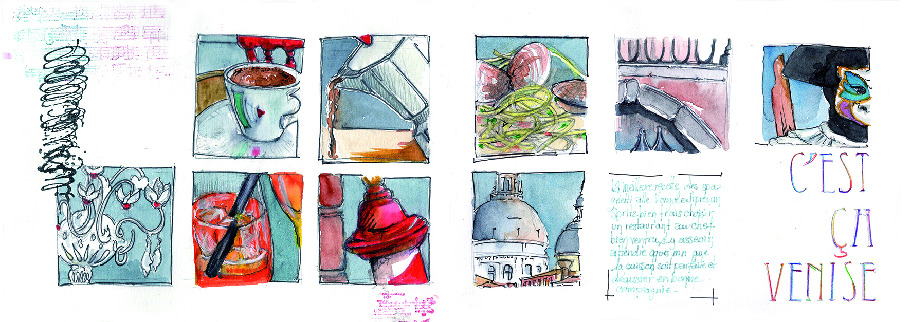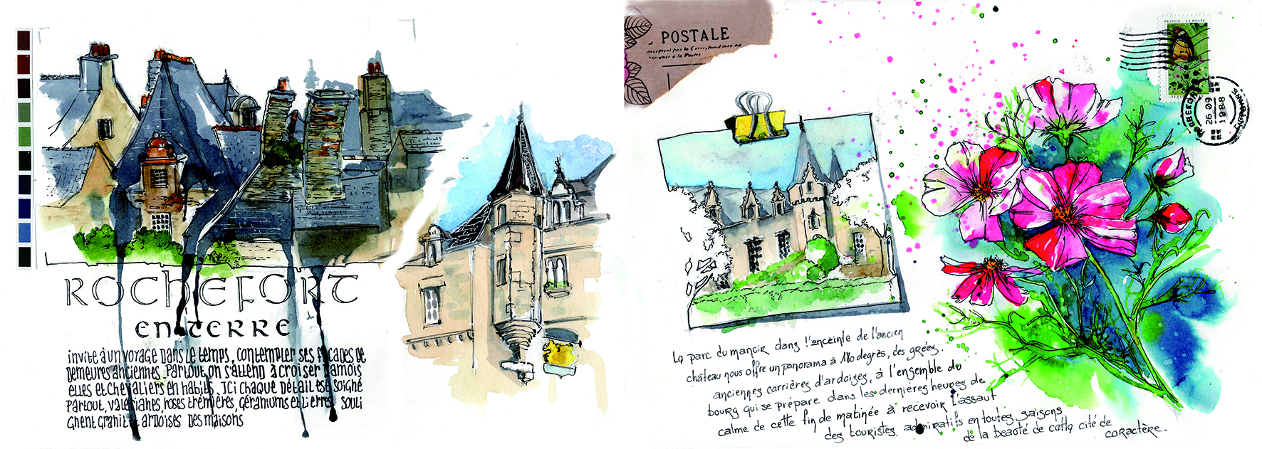 Désormais je propose des stages de carnet de voyage à travers la France entière. Mes particularités : la mise en page, la bonne humeur et le non conformisme. Depuis 2023 je me suis formée, lors d’un C.A.P., à la reliure pour pouvoir vous proposer cette nouvelle activité complémentaire à celle du dessin.