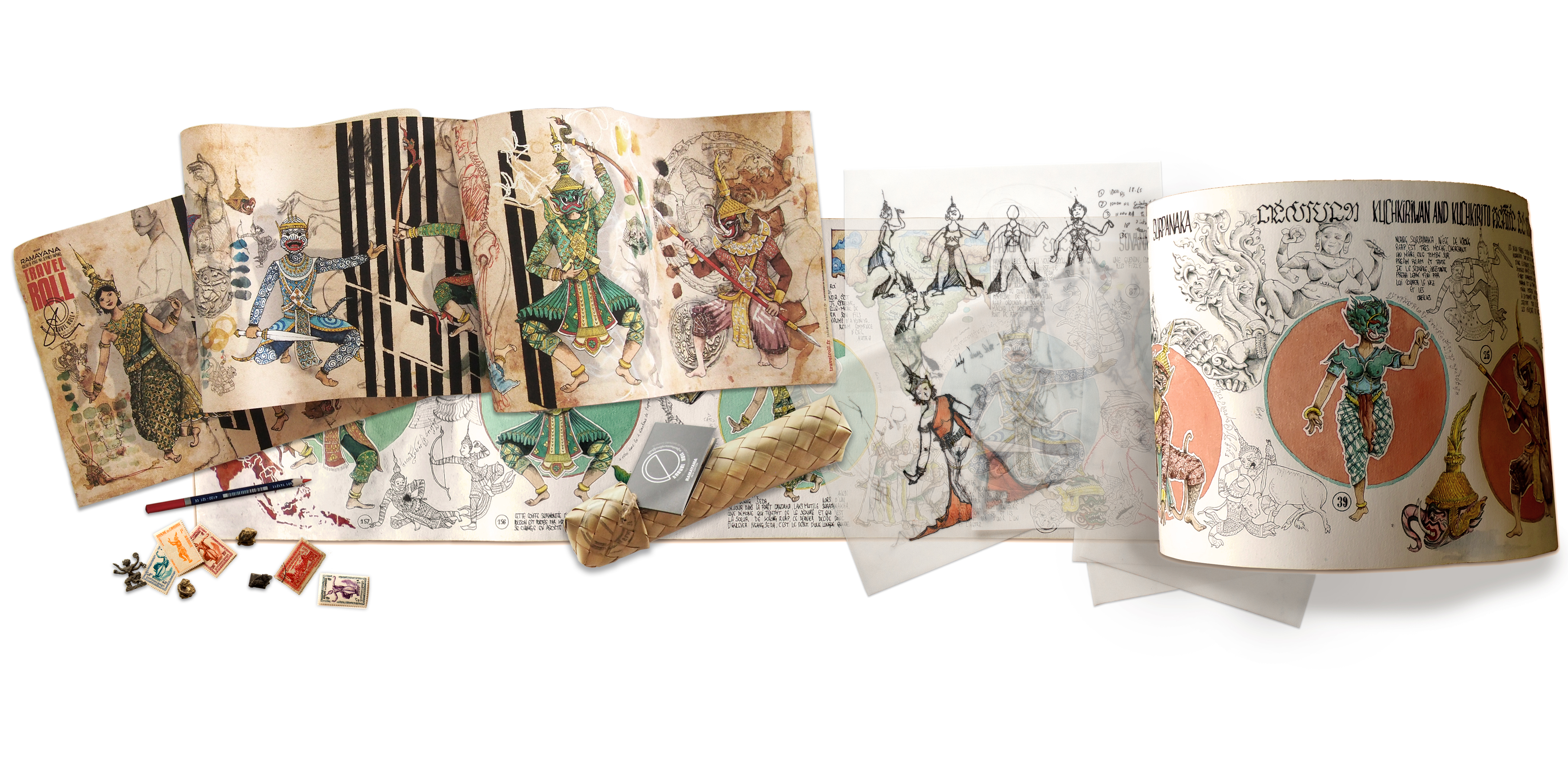 Créé au Cambodge en 2016 après des mois de road-trip et sans-le-sou, Travel roll (traduction « rouleau de voyage ») c’est des carnets de voyage sous forme de rouleaux dessinés. Livre-objet ou volumen, c’est à travers le ressenti et un regard sensible qu’ils se déroulent sur plusieurs mètres de longueur pour voyager sans s’arrêter.