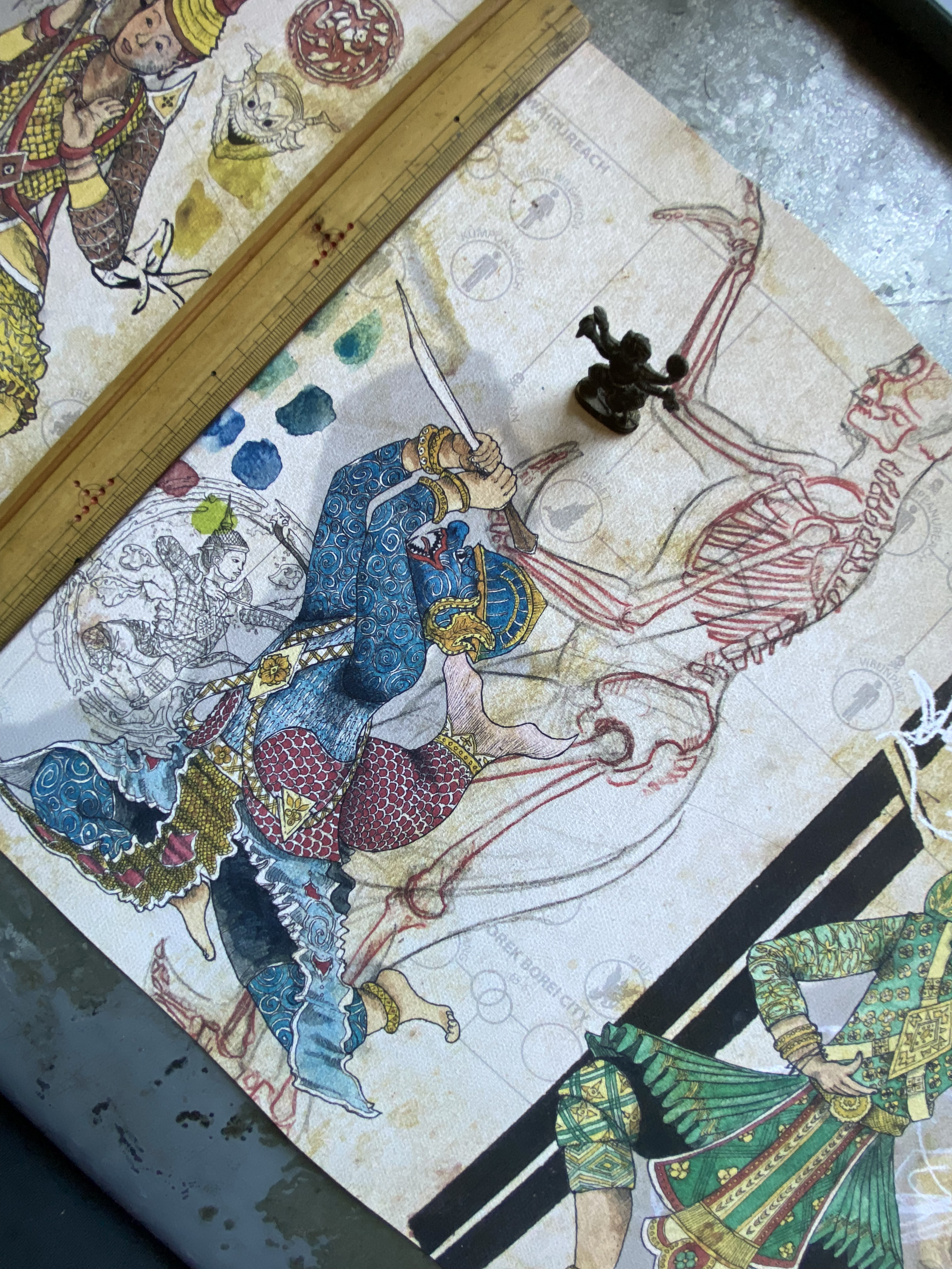 « Mes années en Asie m’ont permis de rapporter quelques précieuses reliques longuement coloriées et méticuleusement détaillées qui, je l’espère, feront voyager petits et grands. »