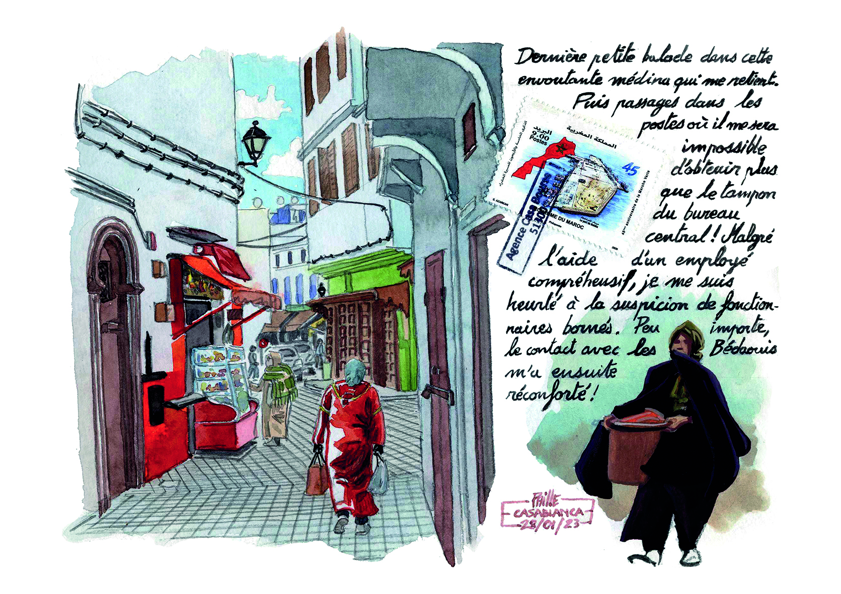 Infatigable voyageur, avec son regard affuté de dessinateur-carnettiste, il nous restitue l’ambiance et la respiration des villes et lieux traversés et leurs trésors cachés.
