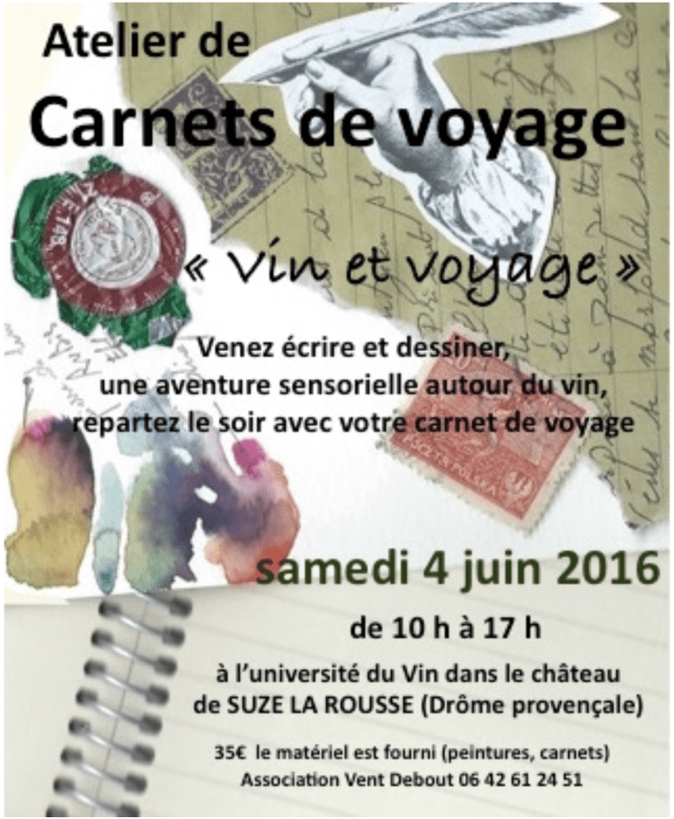 [VENT DEBOUT] est une association de bénévoles enthousiastes implantée à Suze-la-Rousse par Corinne Dessis, sa présidente, qui propose des ateliers mensuels d’écriture et de création artistique, ainsi que des stages (« atelier de carnets de voyage aux quatre vents », « Vin et voyage, une aventure sensorielle autour du vin », « écriture chinoise », « le vert, la grande perdante de l’automne », « carnet de voyage en Provence »), animés par différents intervenants: écrivaine poète, artistes plasticiennes, carnettistes, animateurs.rices d’ateliers d’écriture.
