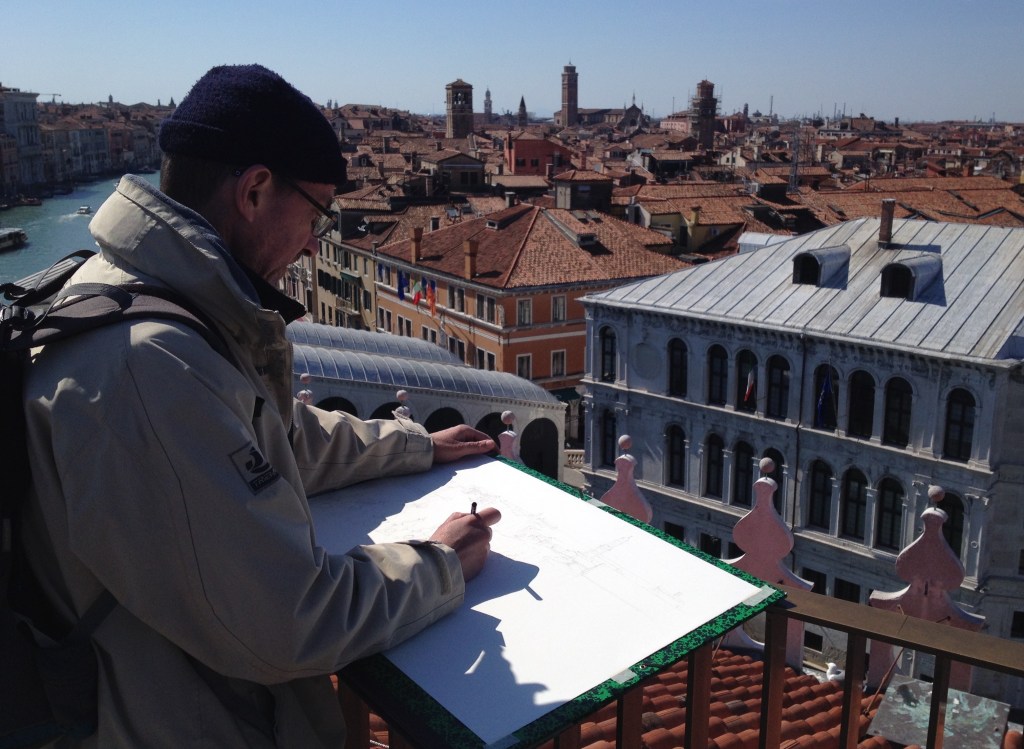 « Carton à dessin sous le bras, j’ai toujours aimé partir à la recherche d’un point de vue et m’installer pendant des heures pour dessiner des vues souvent panoramiques, de lieux et d’architectures choisis aussi pour leur histoire, comme autant de témoignages presque documentaires.